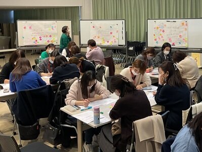 「組織における看護管理者の役割とリーダーシップ」について講義を受けた後、3~5人のグループでグループワークをして理解を深めました。管理者の情報交換と仲間づくりにもつながるように、終了後に交流会も開催しました。