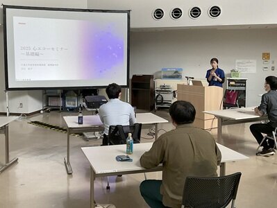 基礎編と実践編それぞれについての講義と実習ハンズオンは技師の指導のもと模擬患者2名で基本的な心エコーを学び、さらにシミュレータで疾患も体験。
